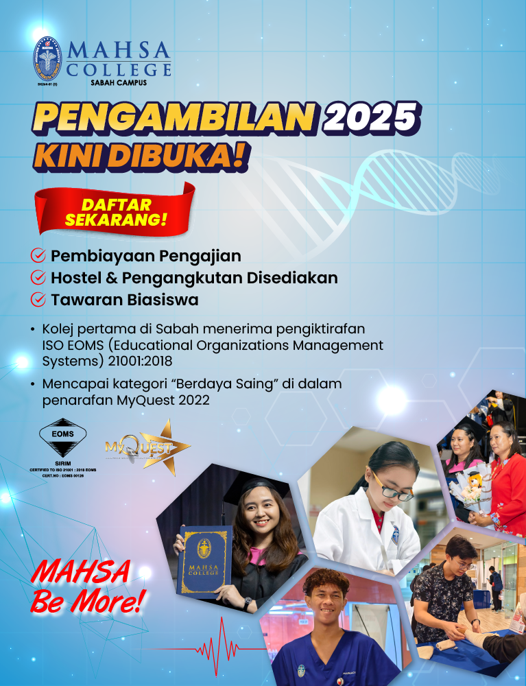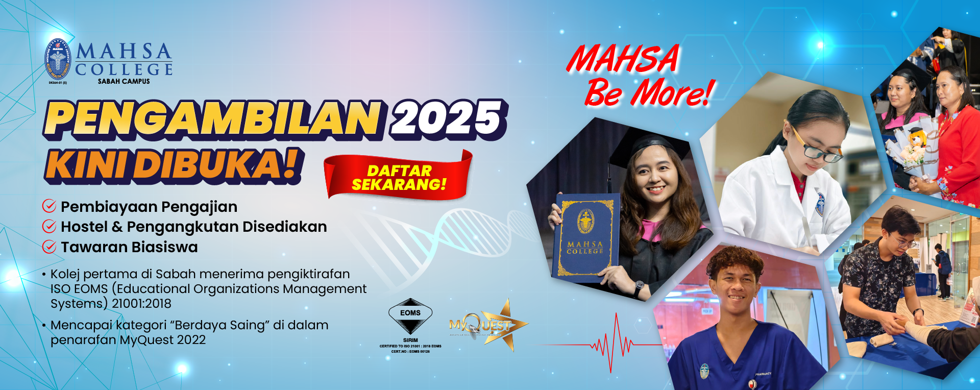 MAHSA College Sabah was founded in the year 2005 by Professor Tan Sri Dr. Hj. Mohamed Haniffa who is also Pro-Chancellor and Executive Chairman of MAHSA University. Professor Haniffa is a clinical practitioner of Medicine whose vision involves the creation of a stronghold of academic excellence in Medicine, Dentistry, Pharmacy, Nursing and Allied Health Sciences, Business and Engineering in the South-East Asian region.